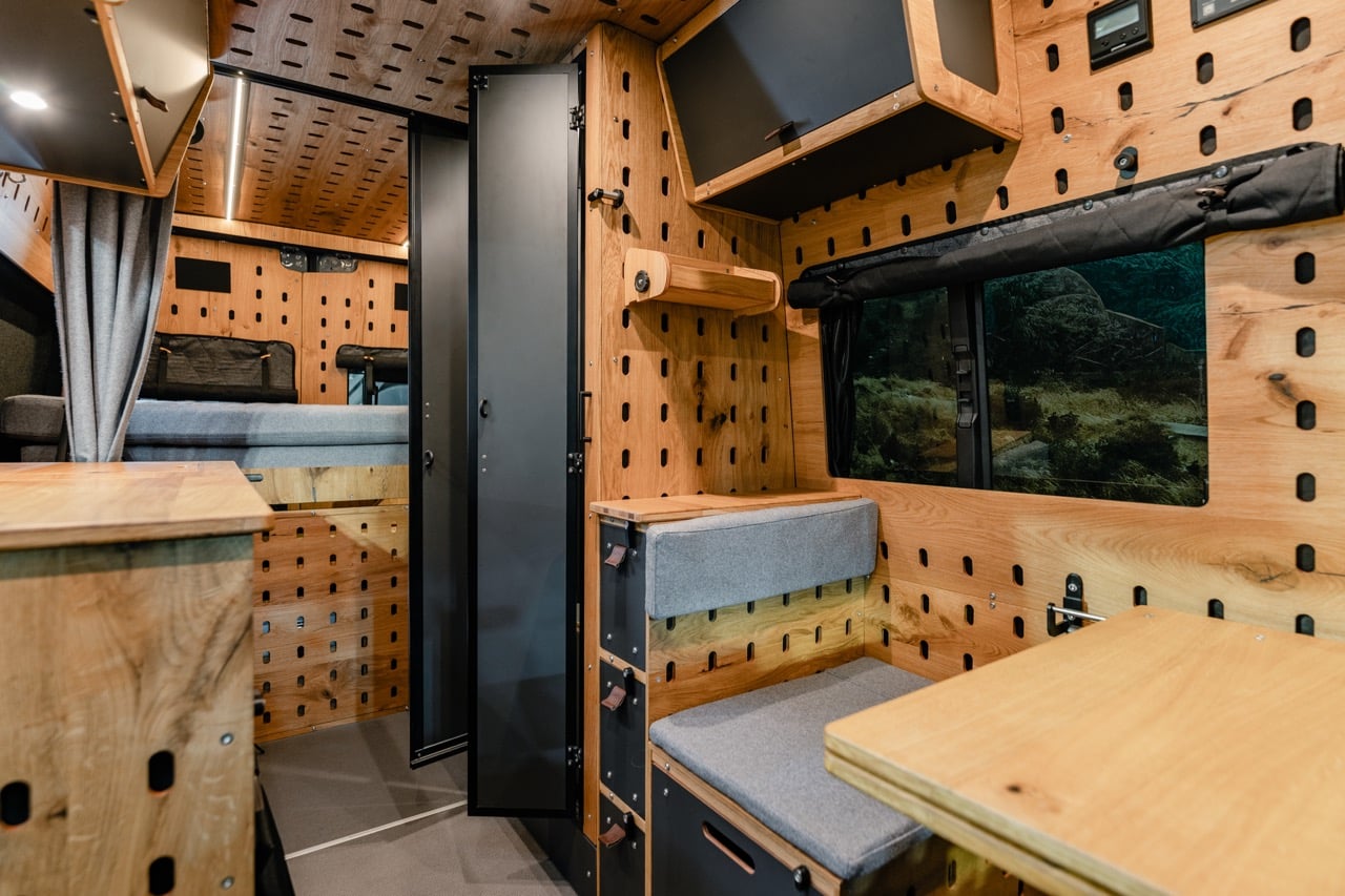 – auf Wunsch kann zusätzlich ein Klappwaschbecken eingebaut werden, das beim Öffnen der Flügeltüren ebenfalls sofort verwendet werden kann
